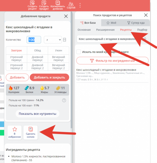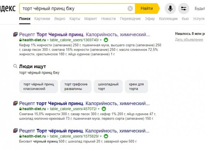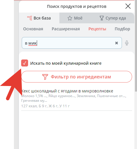строке выдаёт МЗР. Хотя и по запросу (название блюда/продукта) тоже