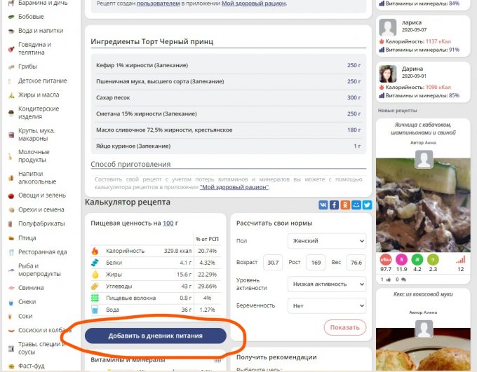 ценность (название блюда/продукта). Оказывается, всегда в первой