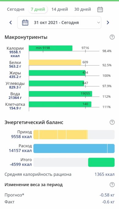 Чтобы увидеть отчеты по питанию и график веса, необходимо войти.