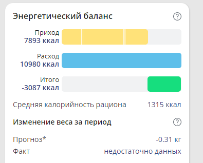 | Итого за день | 3000 | 1463 | 109 | 57 | 123 |