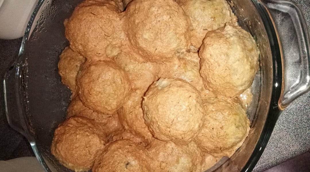 Овощи все измельчить блендером. Рис приварить. Смешать овощи, фарш, рис и яйца. Добавить по вкусу соль, перец, специи. Сформировать шарики, выложить в сковороду или любую другую посуду. Томат-пасту смешать со сметаной и водой, залить колобки и тушить в духовке 40-50 мин. Перед подачей посыпать зеленью.