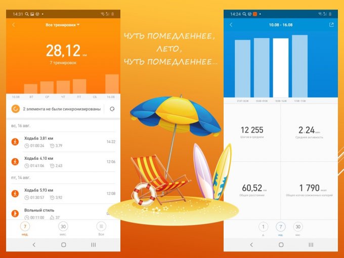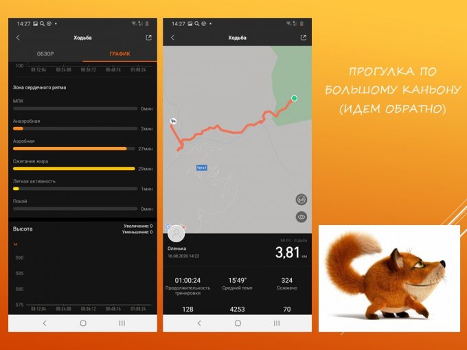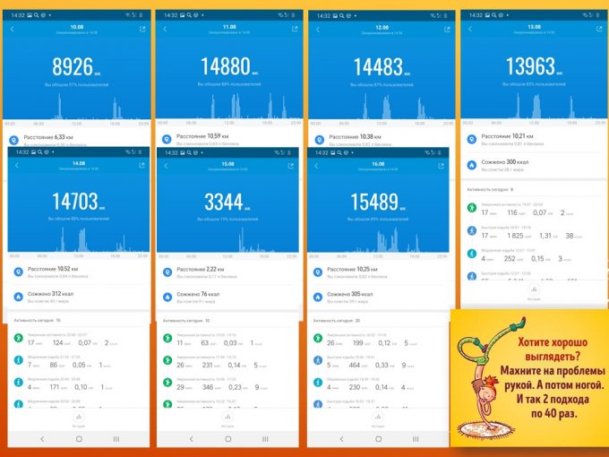 Активность - выполнено, в серднем 12 тыс. в день, прогулки по утрам