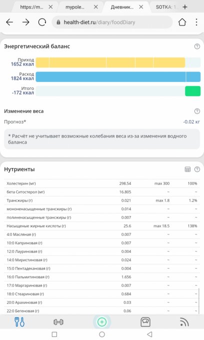 Надо справа от рейтинга нажать на 'табличку' и выйдет список, там много чего есть... Холестерин ниже немножко надо промотать вниз