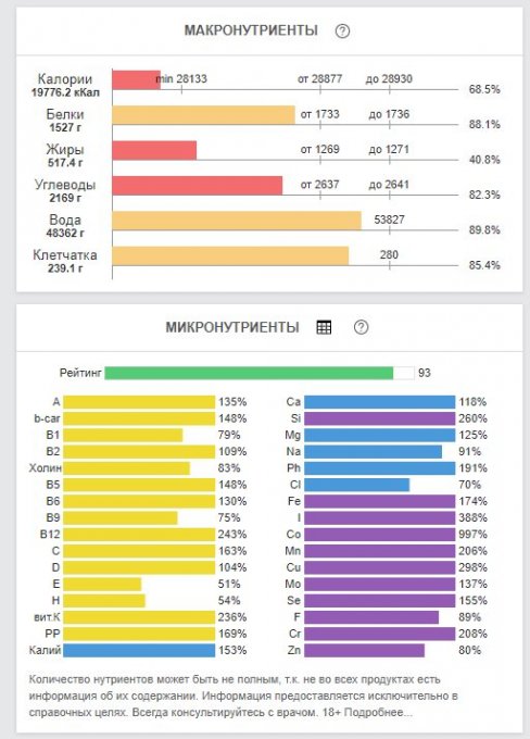| Итого за день | 3780 | 1532 | 108 | 50 | 153 |