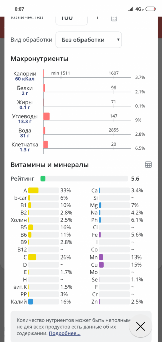 | Кол-во | Калории | Белки | Жиры | Углеводы | |