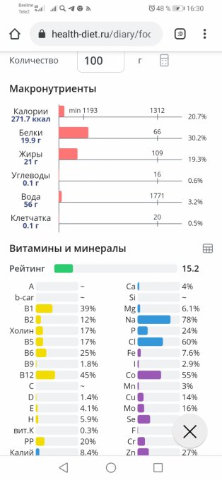 | Кол-во | Калории | Белки | Жиры | Углеводы | |