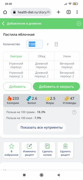 1.5 кг яблок - выход 220 гр пастилы, калорийность: