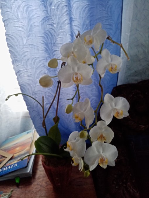 Когда работала, в кабинете у меня было 2 орхидеи. Белая с крупными цветами и фиолетовая с мелкими. Большие такие обе, хорошо им там было. Цвели по 9 месяцев в году. С работы ушла, подарила их девочкам, не стала жадничать. Ни в квартире, ни на даче нет подходящих для орхидей условий. Решила, что пусть им будет хорошо, пусть цветут и радуют других