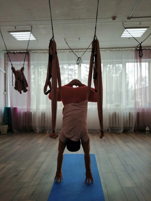 Йога в гамаках. Сегодня в основном растяжка. Из силовых: планка,