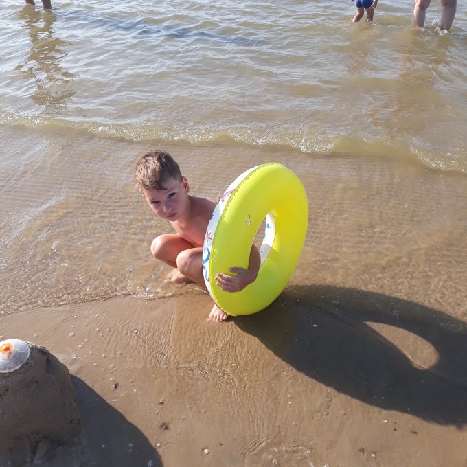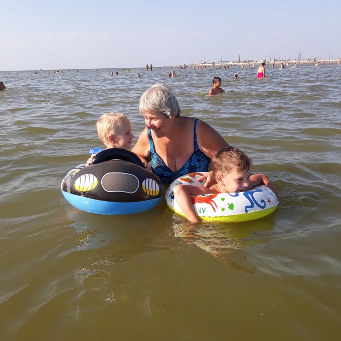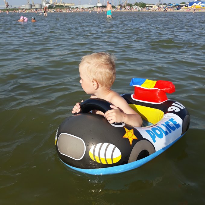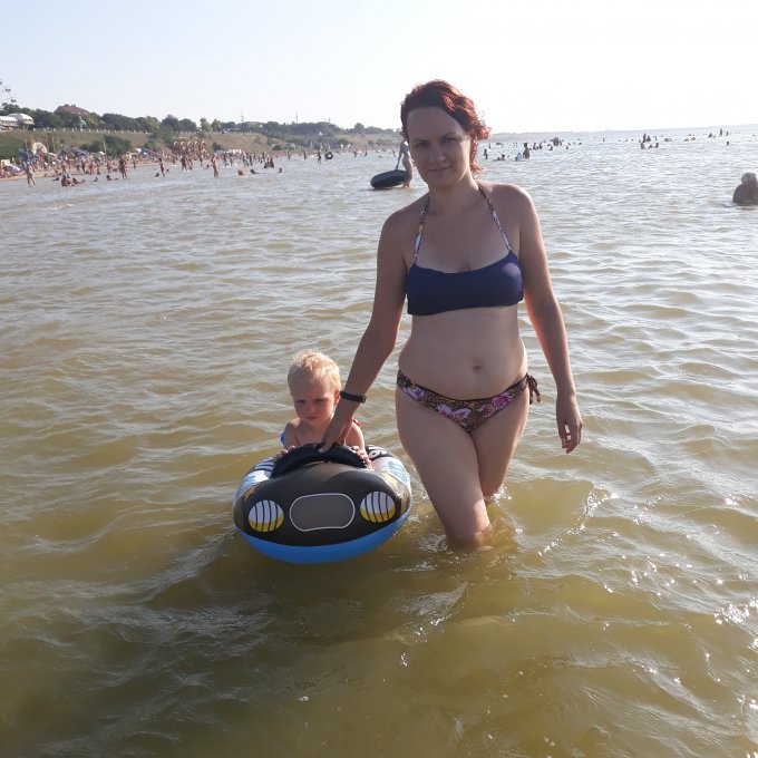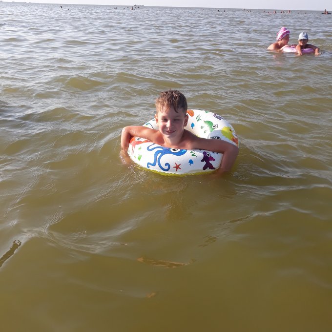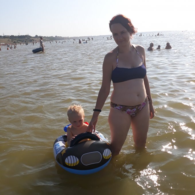 То итогу азовское море полностью оправдало мои ожидания. Но ехать туда  в идеале в июле, по крайней мере таким аллергикам как я с мужем. Ибо цветущая по всему городу амброзия сущий ад. Детям для воды купили круги, старшему обычный, младшему машинку (в воде только ножки, попа сидит на круге, в котором дырочки для ног), оба кайфовали, что могут плавать хотя бы так. Правда малой был уверен что сам управляет машинкой, и ругался с ней, почему она его не слушается:crazy:.