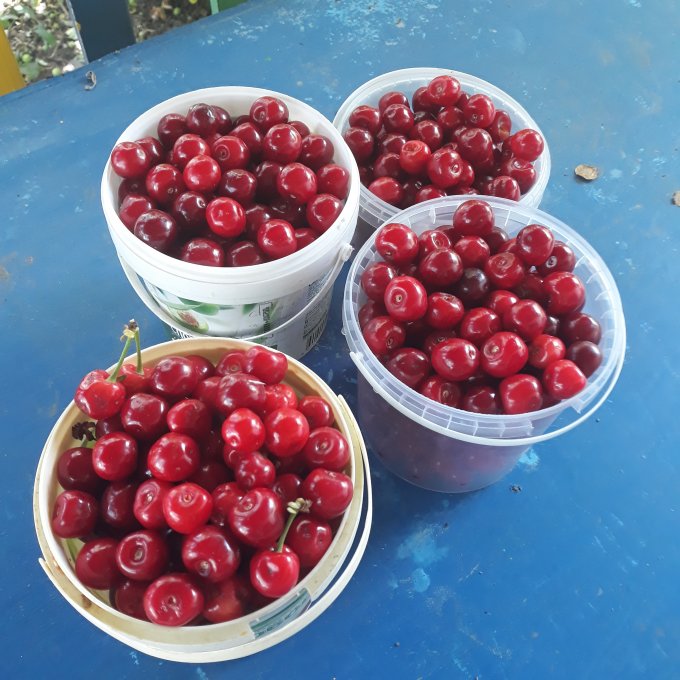 На обратном пути у меня было особое упражнение: донеси полное ведро чере-вишни (3-4 кг точно было), до дома с препятствиями в виде детей :хихикаю:, которые пытаются врезаться в тебя с разбега, вещаются на руки и ставят подножки:crazy:. Путь до дома около 20 минут пешком, к концу руки уже устали, хотя вроде и меняла из одной в другую частенько.