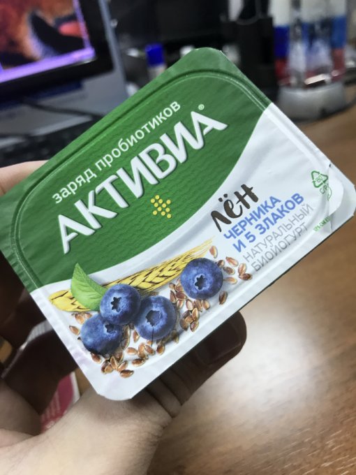 | Биойогурт, обогощенный бифидобактериями, с черникой, знаками и льнямыми семенами |