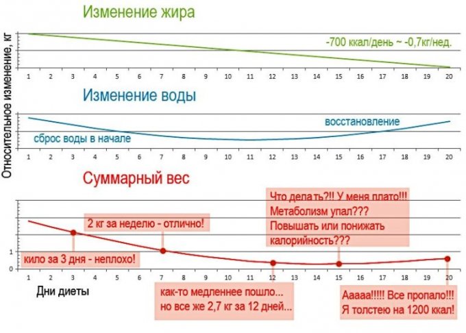 Где-то тут была табличка ухода и прихода воды с начала похудения...график сначала идет вниз, потом немного вверх.