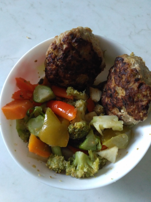 в пароварке, потом нарезаю кубиками, перемешиваю и добавляю соус)))