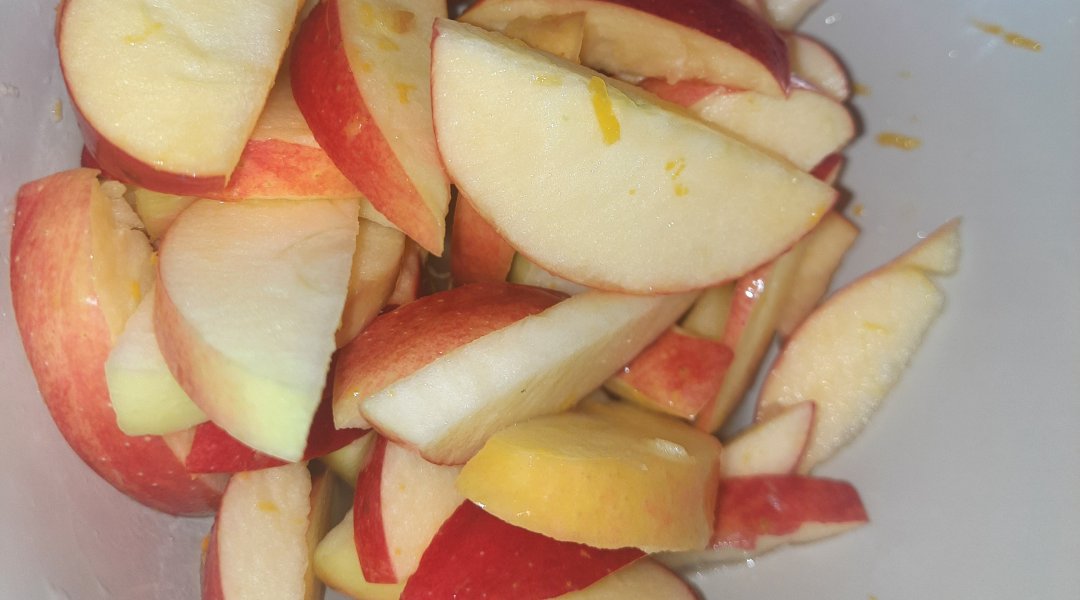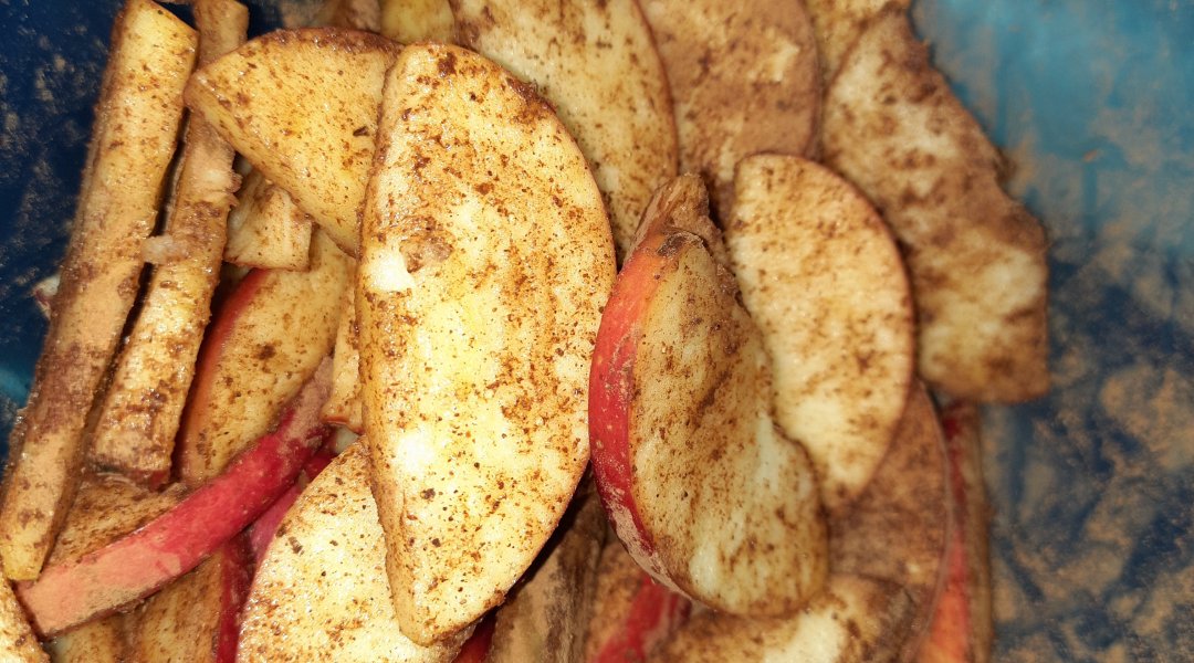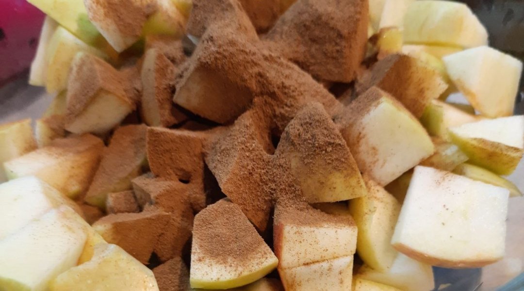 Яблоки нарезать кубиками смешать с корицей, можно добавить немного сахзама