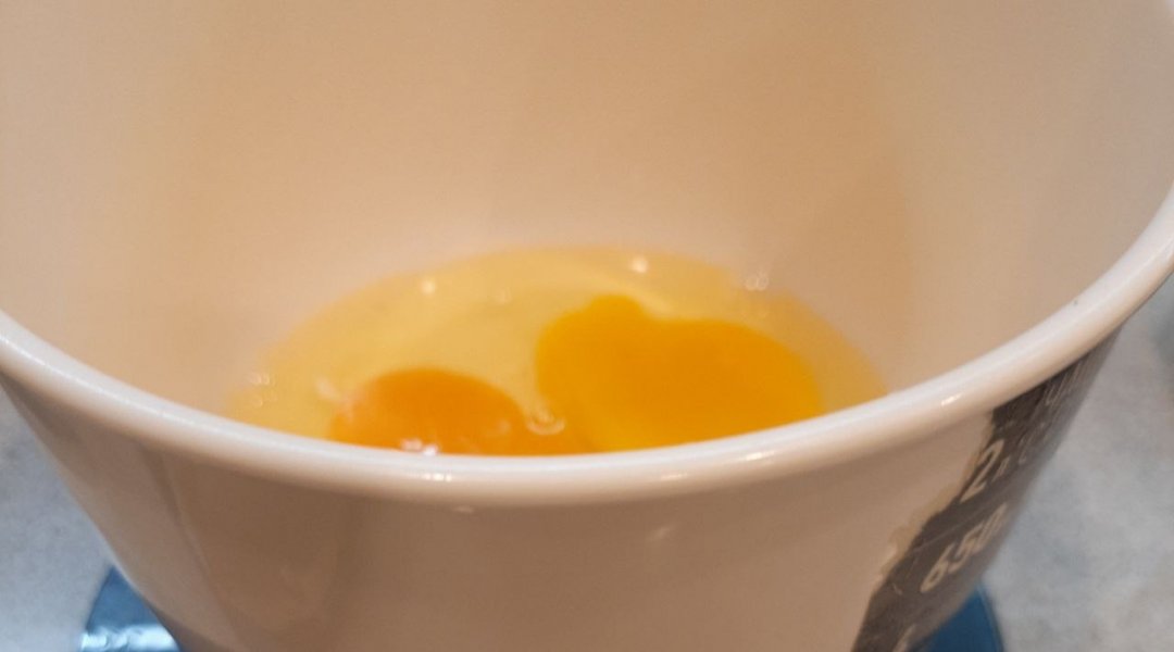 Во взбитое яйцо вливаем 50 аж 50 граммов масла, взбиваем