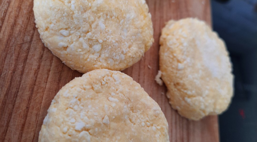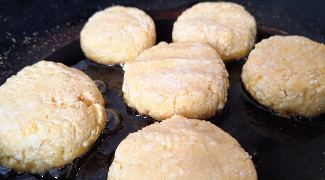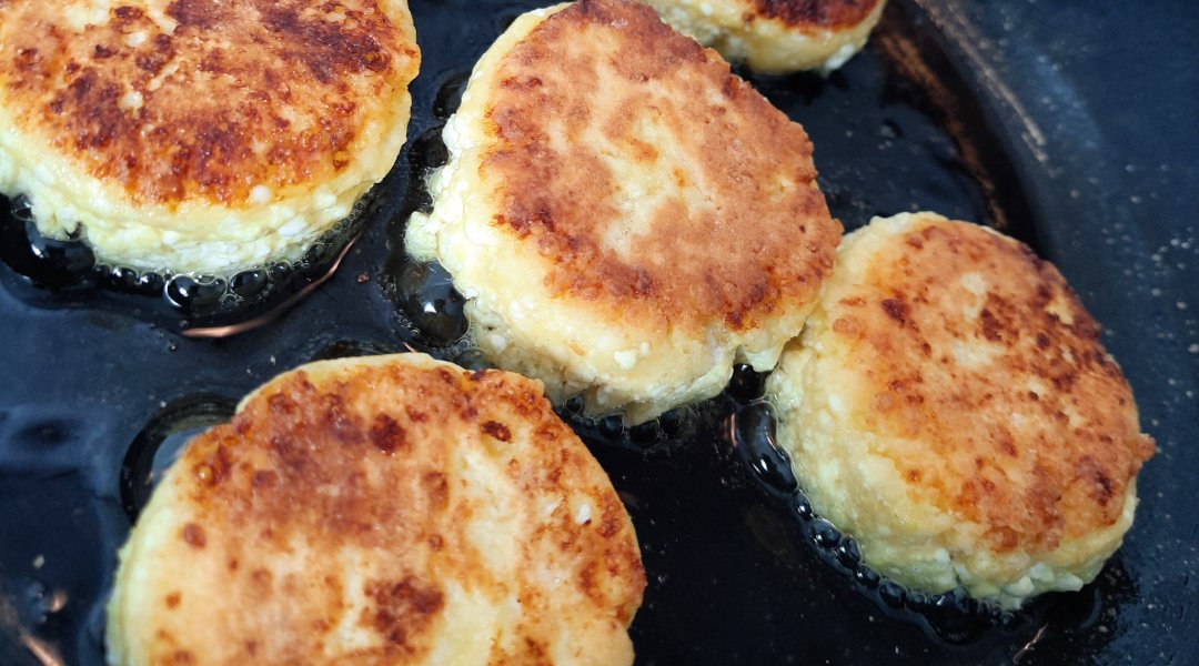 Творог растереть с яйцом, добавить соль, можно подсластитель, муку, сформировать сырныки