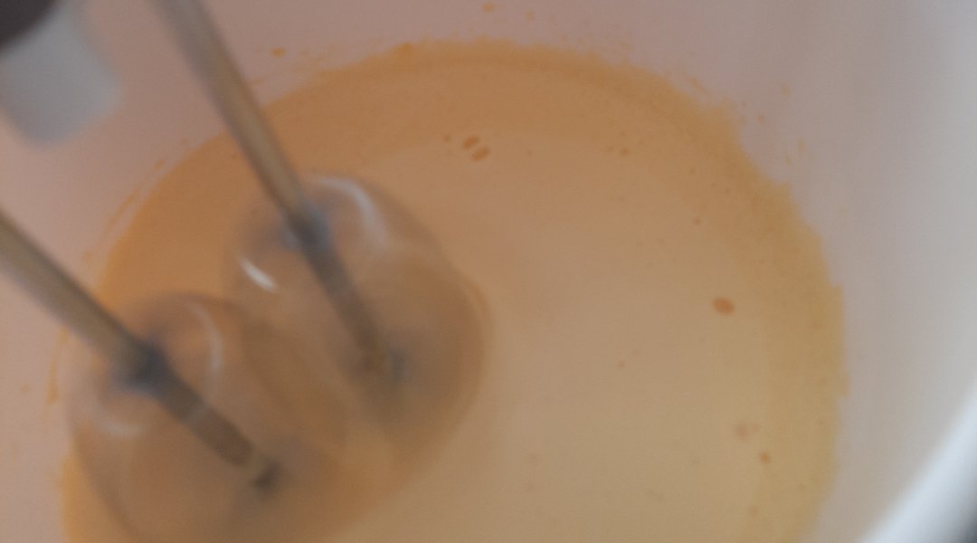 Яйцо взбиваем со щепоткой соли, ванилином и 5 ложечками prosweet