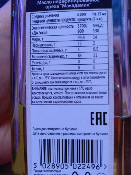 Масло ореха макадамия нерафинированное |