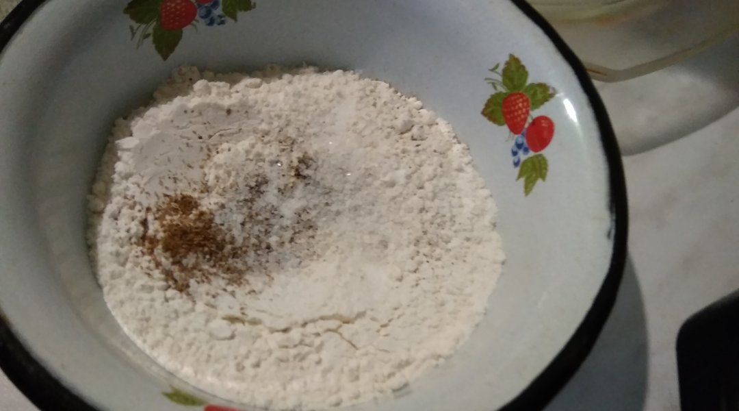 В муку добавить соль, перец, молотый кориандр. Перемешать.