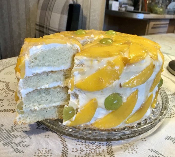 прослойка из маракуйи. Йогуртовый крем, нежный бисквит, в итоге
