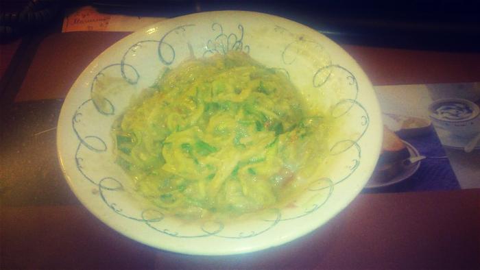 это соус. Берем цукини свежий и натераем на терке как спагетти))