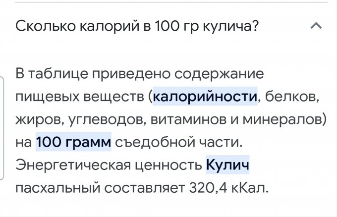| Кол-во | Калории | Белки | Жиры | Углеводы | |