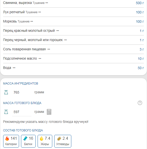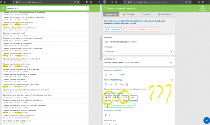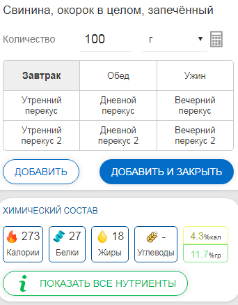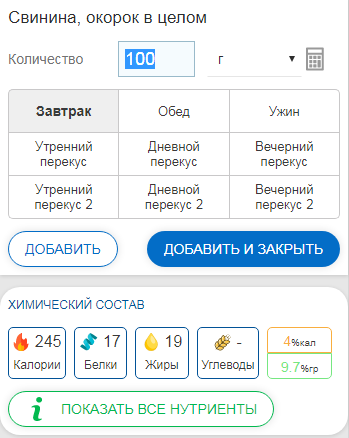 свинина здесь же в справочнике (а не в злосчастном рецепте) с