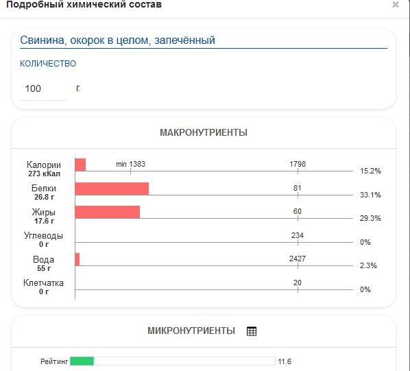 сала) 170-250ккал, а нам в рецепте простого запеченного в режиме