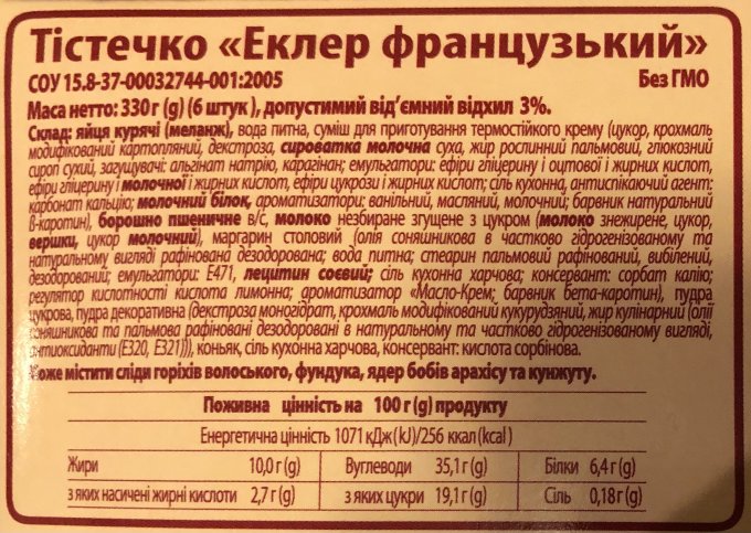 | Эклер с заварным или сливочным кремом, охлажденный |