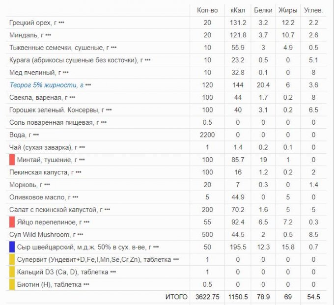 | Итого за день | 3622 | 1150 | 78 | 69 | 54 |