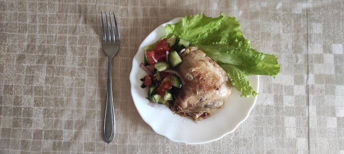 | Салат с помидорами, огурцом , зеленью и луком в оливковом масле |