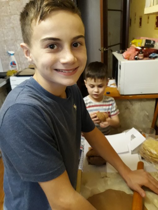 рассыпали ,карамель была в волосах у младшего ,взбитый белок по