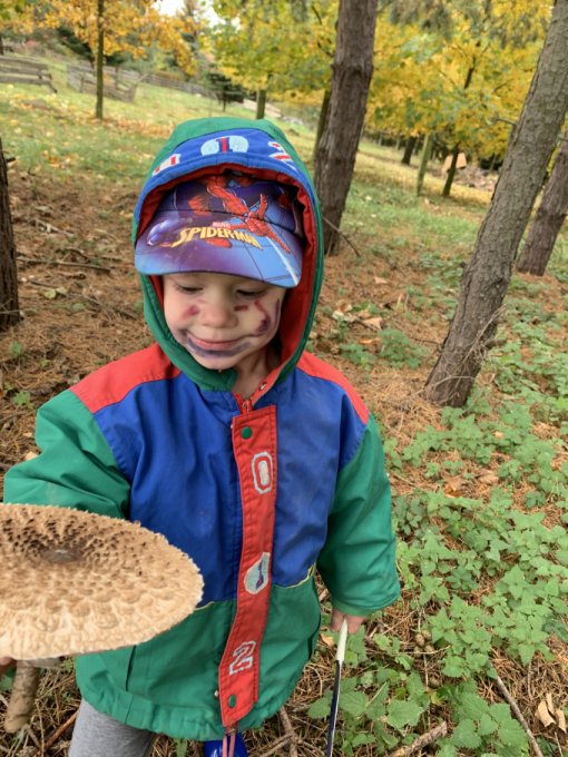 Детки мечтали пойти в лес за грибами. Все бы ничего, только в грибах я не понимаю ровным счетом ничего. Пошли мы :) собирали с азартом и раскладывали под соседние ёлочки с неменьшим. Домой принесли огромные зонтики и яблоки, ещё опята насобирали в саду у нас, в них я уверена. удовольствие получили максимальное, а сегодня снова дождь.