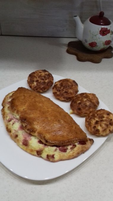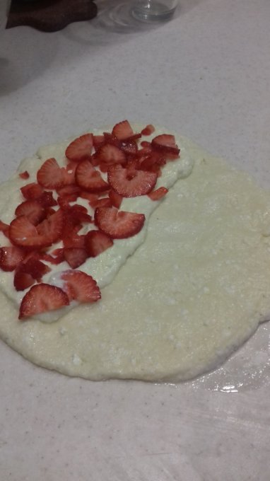 Делала его с клубникой, осталось немного начинки, дабавила 2 ложки