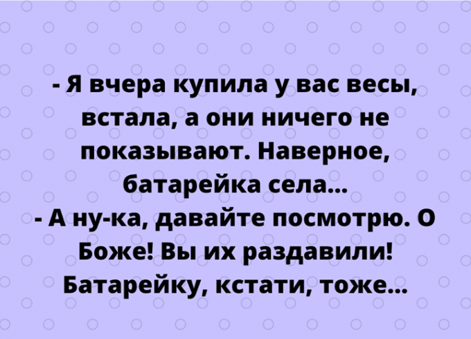 двоюродная сестра : " У тебя есть весы анализатор ,становись ,давай