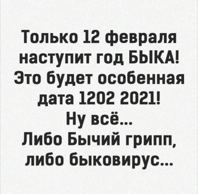 Год быка уже наступил 3-го числа... Ну и какая то грустная шутка.... Все ждут окончания напасти.... В том числе и с началом нового года..