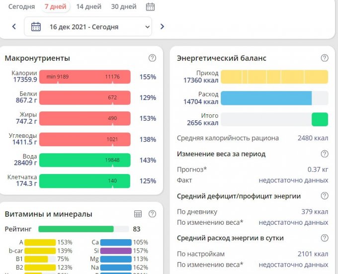 Чтобы увидеть отчеты по питанию и график веса, необходимо войти.