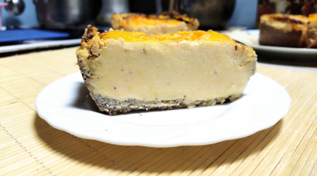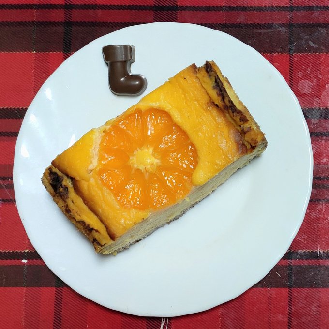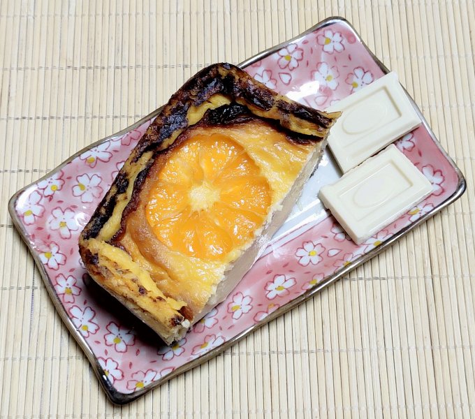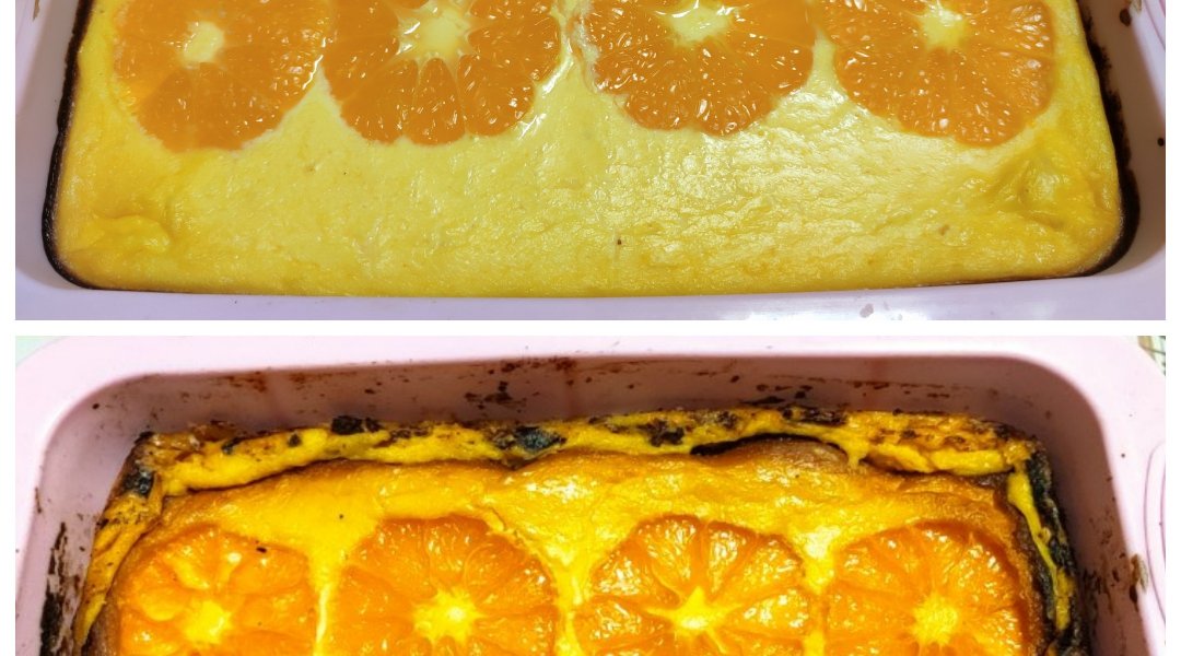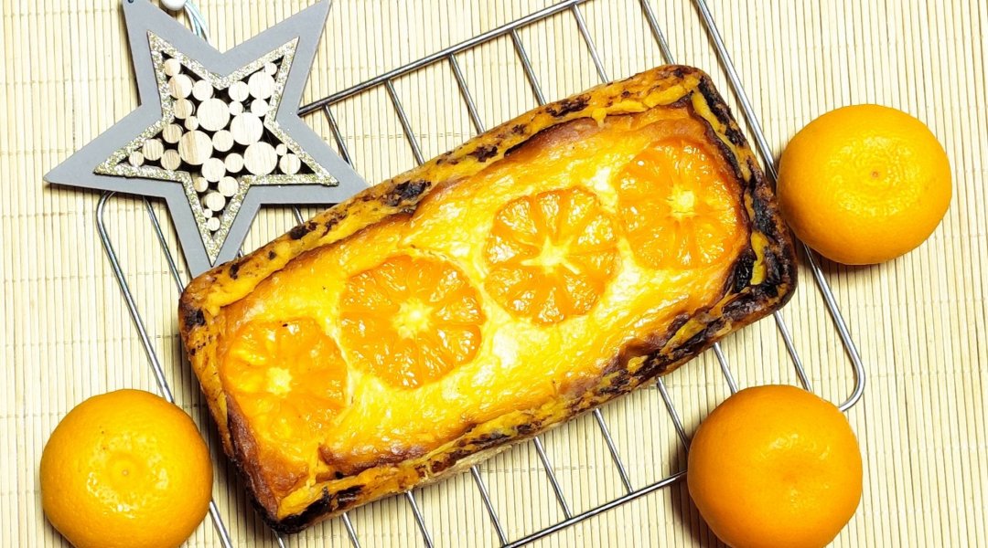 Для заливки смешать все ингредиенты блендером в однопроводной массу. Вылить на основу. Сверху выложить кружочки мандарина.
