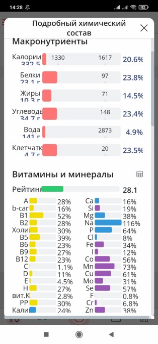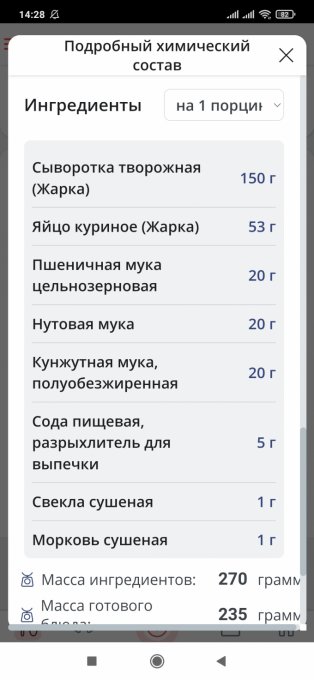 | Кол-во | Калории | Белки | Жиры | Углеводы | |