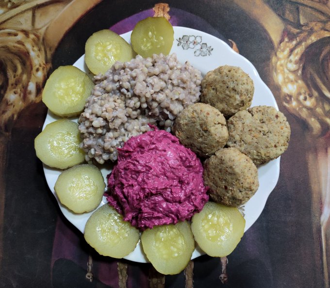 Странное блюдо в завтраке - холодец по-домашнему. Просто взяла в расширенной базе. На самом деле это отвар из куриных лапок. Коллаген вроде как :-)