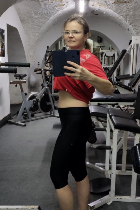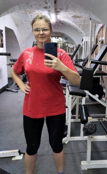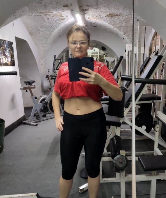 Сегодня сфотографировалась в зале. Вот так в одежде выглядят мои 69