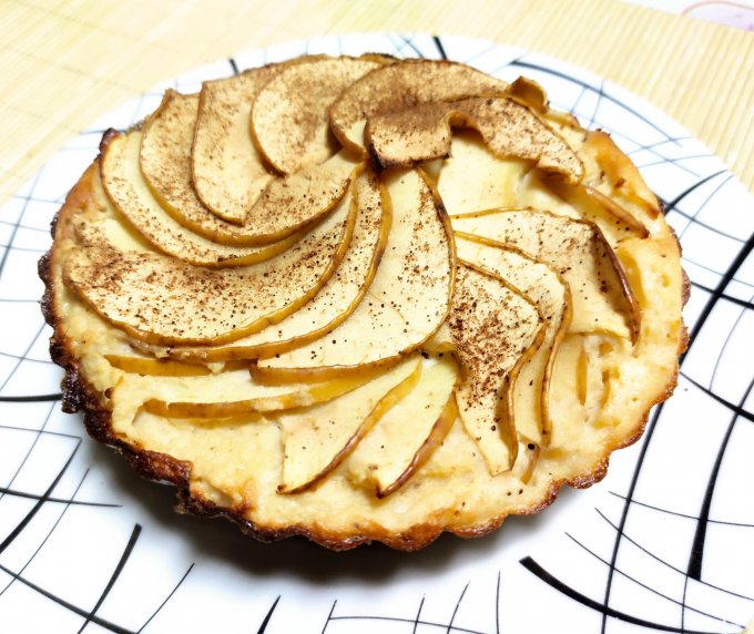 На завтрак намутился пирог с яблоками :-) Рецепт отдельно не составляла. Но все ингредиенты в завтраке: яблоко, яйцо, протеин, сыворотка, подсластитель, разрыхлитель, корица.