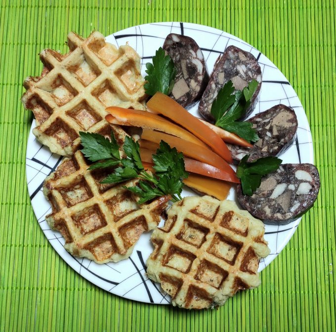 На обед - вафли с дайконом и козьим сыром :-)