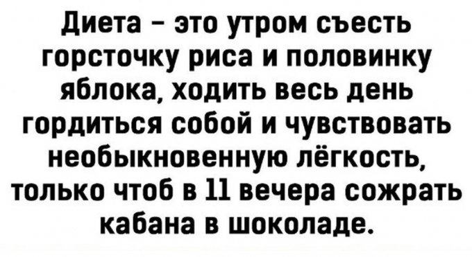 И вообще - у меня интервальное питание: 4 дня в норме калорий, 3 дня наедаюсь :-)