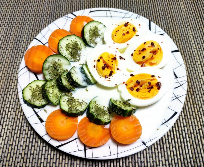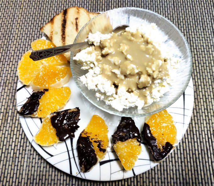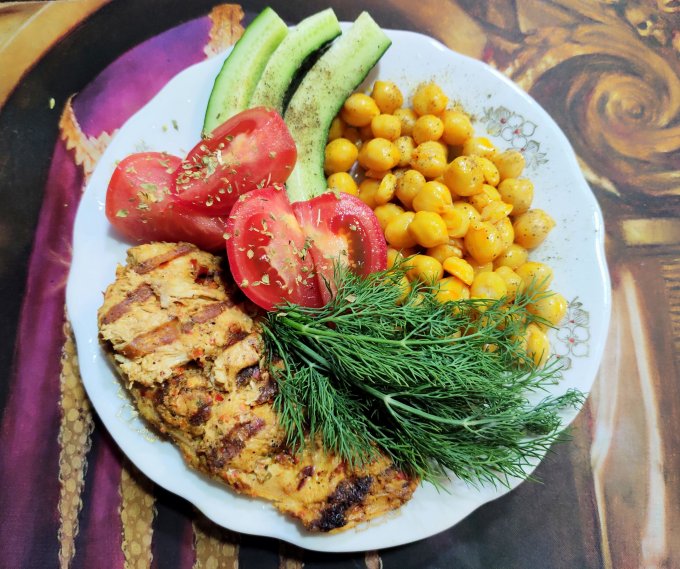 Сегодня снова без чудесатостей в меню. Так, творожок, нут, курочка, овощи, аички.
