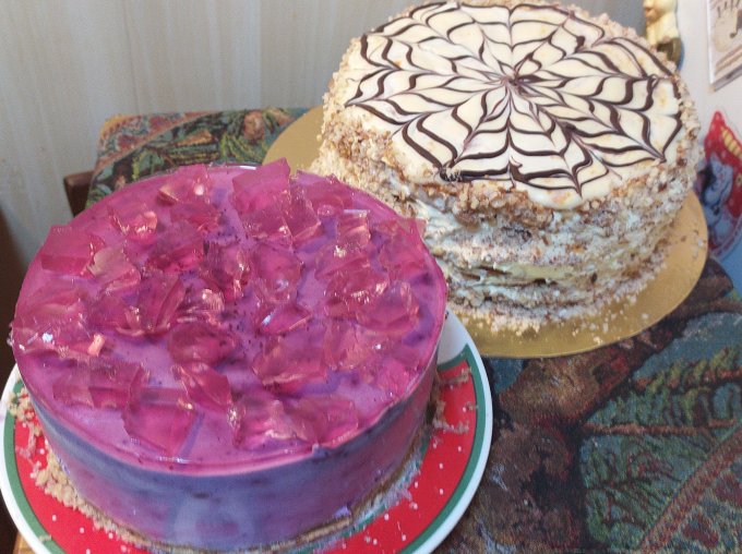 Сегодня вкусный ужин.Два куска любимых тортиков: черничный чизкейк и Эстерхази, естественно оба без сахара и муки.