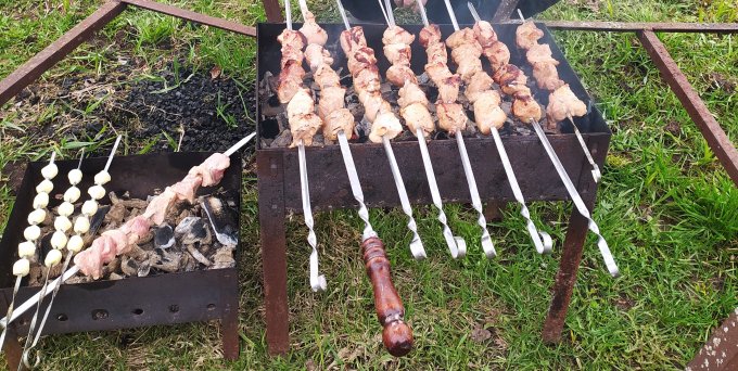 Шашлыки в дождь-это нечто:crazy: :help: Но ничего,справились."Важней всего погода в доме".Салатов нарезали, но очередь не дошла.Люля кебабы делала сама, забила что близко по составу