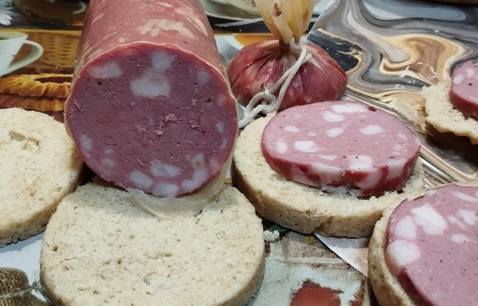 Вчера приготовила колбасу , ну и сегодня не дождалась ужина. Ещё хлебушек к ней по быстрому с домашним маслом.:хорошо: