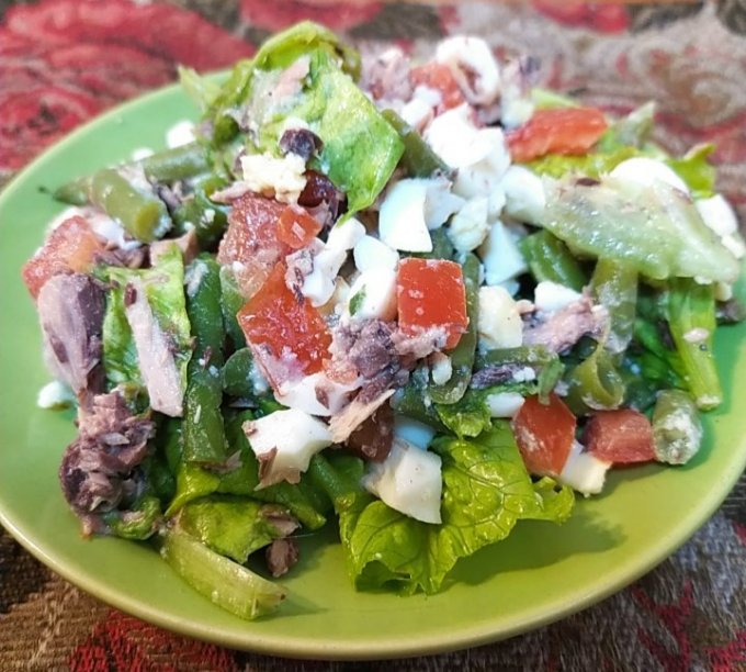 Сегодня много калорий-и на старушку бывает прорушка.Делала вкусный салатик,но рецепт не составляла,всё по отдельности  написала.И сегодня ела магазинный пломбир,посыпала миндалём,